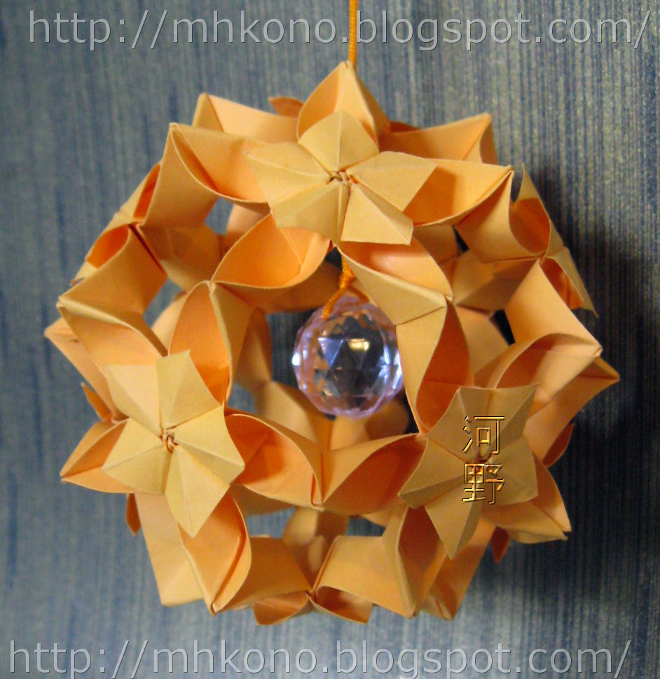 Antes de colocar as fotos, cabe um esclarecimento. Essa kusudama está no livro laranja que a Tomoko Fuse trouxe para Brasília/DF, no ano passado. Observem que chamei de livro laranja, pois não sei o nome do livro. Motivo: está em japonês! E quem me conhece sabe que sou um nipo-brasileiro mais para brasileiro do que para japonês. Ou seja, infelizmente não sei falar, ler e nem entender essa língua. Mas já faz parte da minha agenda entrar em uma escola de língua japonesa. Além disso, também não sei o nome dessa kusudama (mesmo motivo).